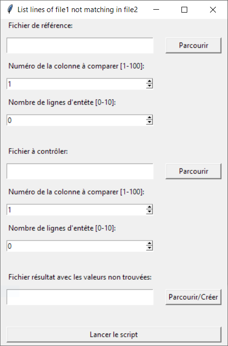 La comparaison se fait uniquement sur une colonne du fichier 1 avec une colonne du fichier 2.